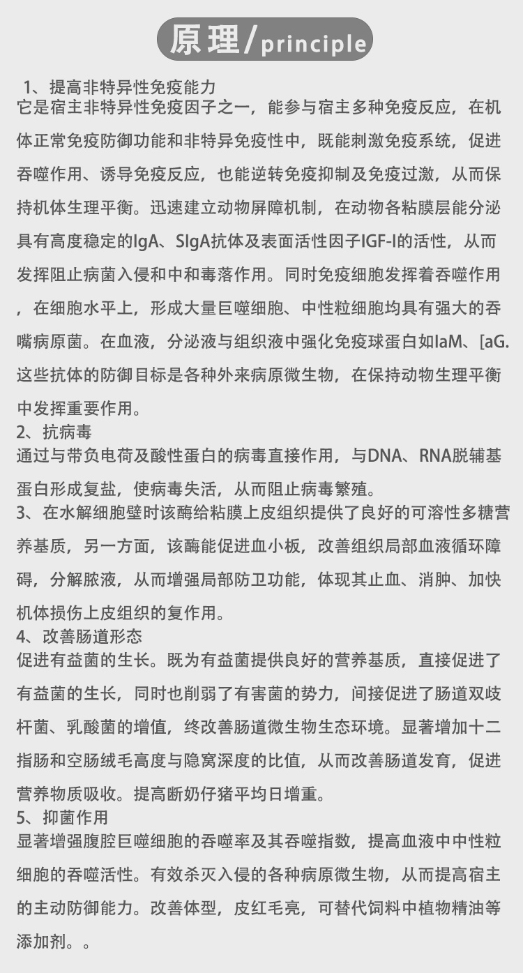 The lysozyme derived from egg white was polymerized into a lysozyme dimer (polymer) using biotechnology (covalent bifunctional crosslinking). A stable polymeric lysozyme, abbreviated as lysozyme dimer, is synthesized through ion conversion technology, microcapsule granulation, and other polymerization methods. Through the modification of the three-dimensional spatial structure of lysozyme, it not only retains all the biological characteristics of individual lysozyme, but also increases the non enzymatic characteristics of lysozyme, and the efficacy of lysozyme is doubled.