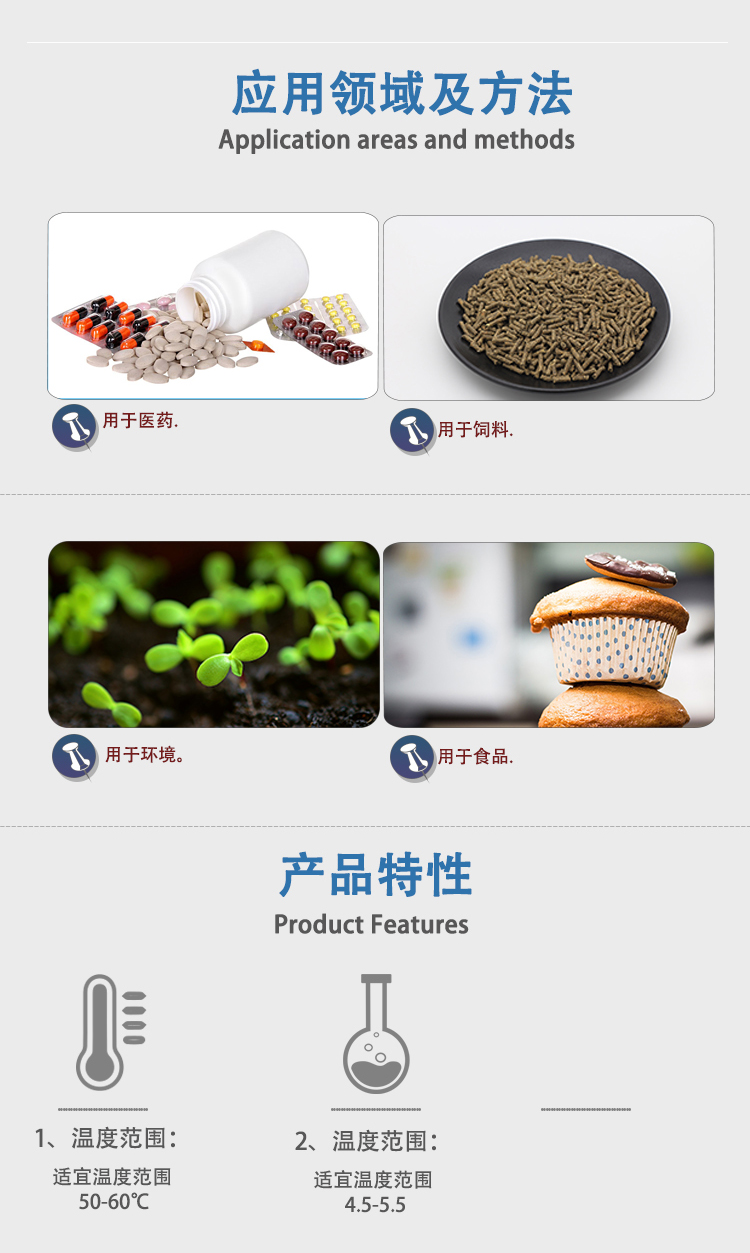 Phytase is refined from Aspergillus niger by submerged fermentation and ultrafiltration. Phytase can degrade phytate phosphorus to inositol and phosphoric acid, so it is very important to reduce the use of phosphorus as an environmentally friendly enzyme.