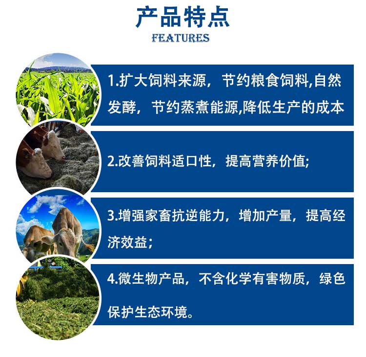L to expand the source of feed, to save food and feed, to save natural fermentation, to save cooking energy, to reduce production costs; L to improve the palatability of feed, to improve nutritional value; l to enhance the ability of livestock to resist adversity, to increase production, improve economic efficiency;