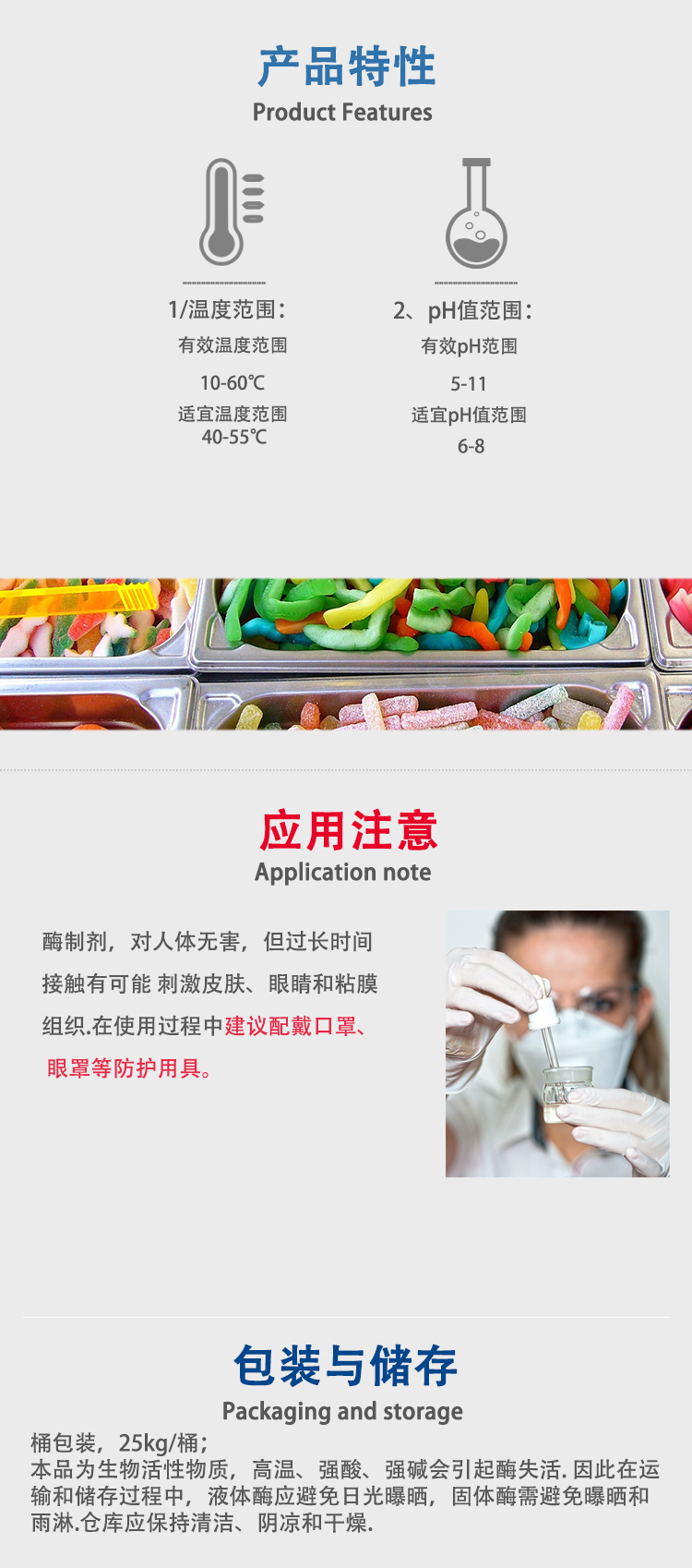 Also known as Bromelain. A sulfhydryl protease from pineapple juice, Peel, etc. . Light yellow amorphous powder, slightly peculiar odor. Molecular weight 33,000. The optimum pH value for casein, hemoglobin, BAEE is 6 ~ 8, and for gelatin is 5.0. The enzyme activity was inhibited by heavy metals. Slightly soluble in water, insoluble in ethanol, acetone, chloroform and ether. It preferentially hydrolyzes peptides on the carboxyl side of basic amino acids (such as arginine) or aromatic amino acid (such as L-Phenylalanine and tyrosine) , selectively hydrolyzes fibrin and breaks down muscle fibers, the effect on fibrinogen was weak. Can be used for beer clarification, medicinal swelling.