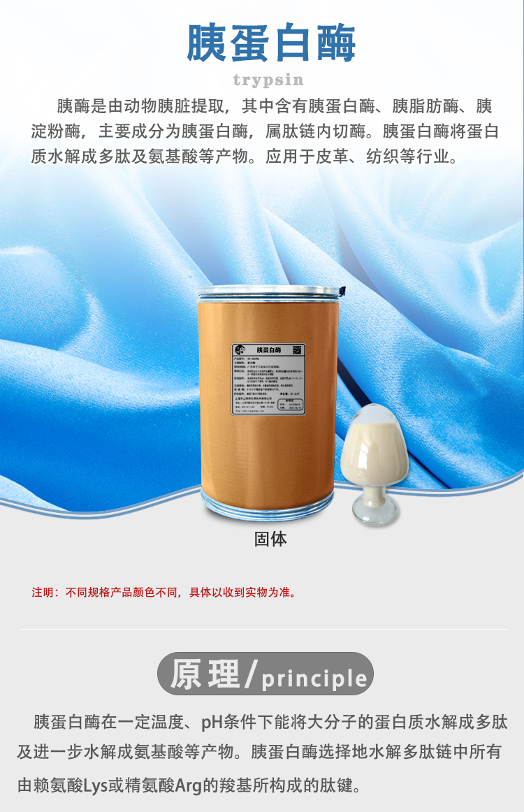 Trypsin is extracted from the pancreas of animals. There are trypsin, pancreatic lipase and pancreatic amylase. The main components of trypsin are trypsin, which are endopeptidase.