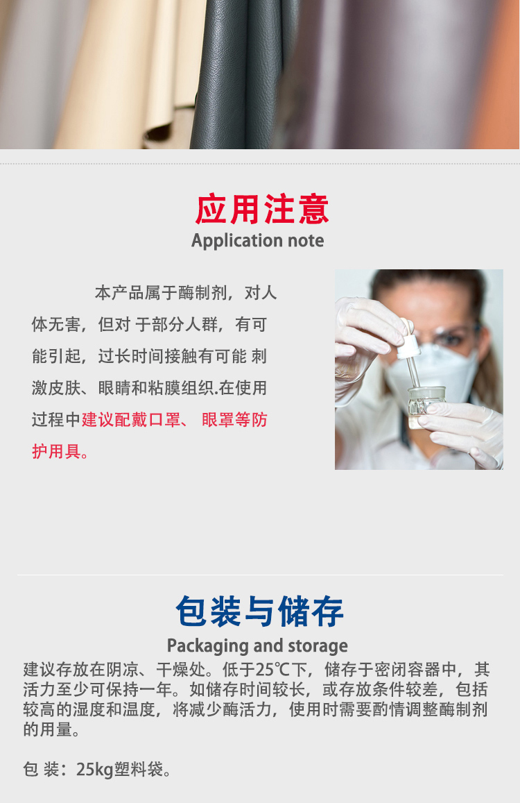 用于动植物蛋白的水解,以及皮革脱毛、软化、羊毛丝绸脱胶等加工。
