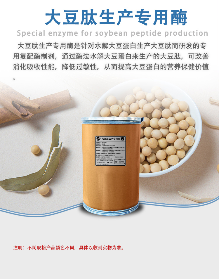 The enzyme for soybean peptide production is a compound enzyme preparation for hydrolyzing soybean protein to produce soybean peptide